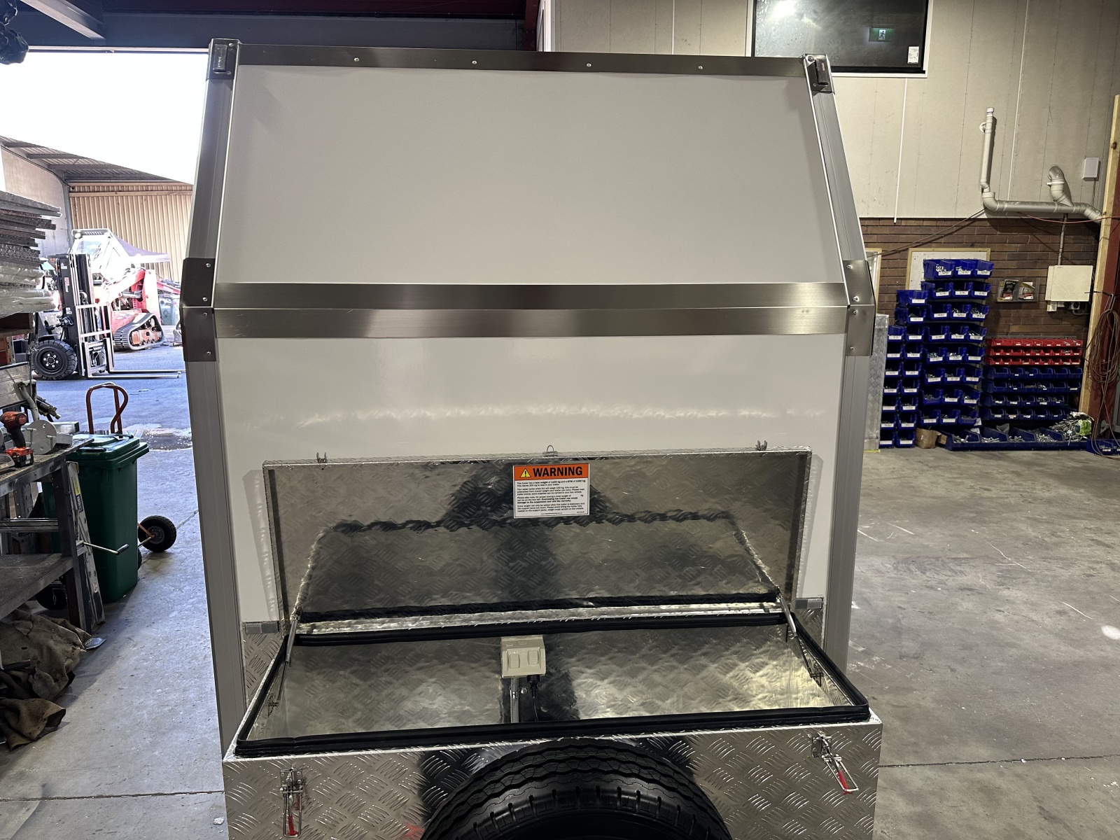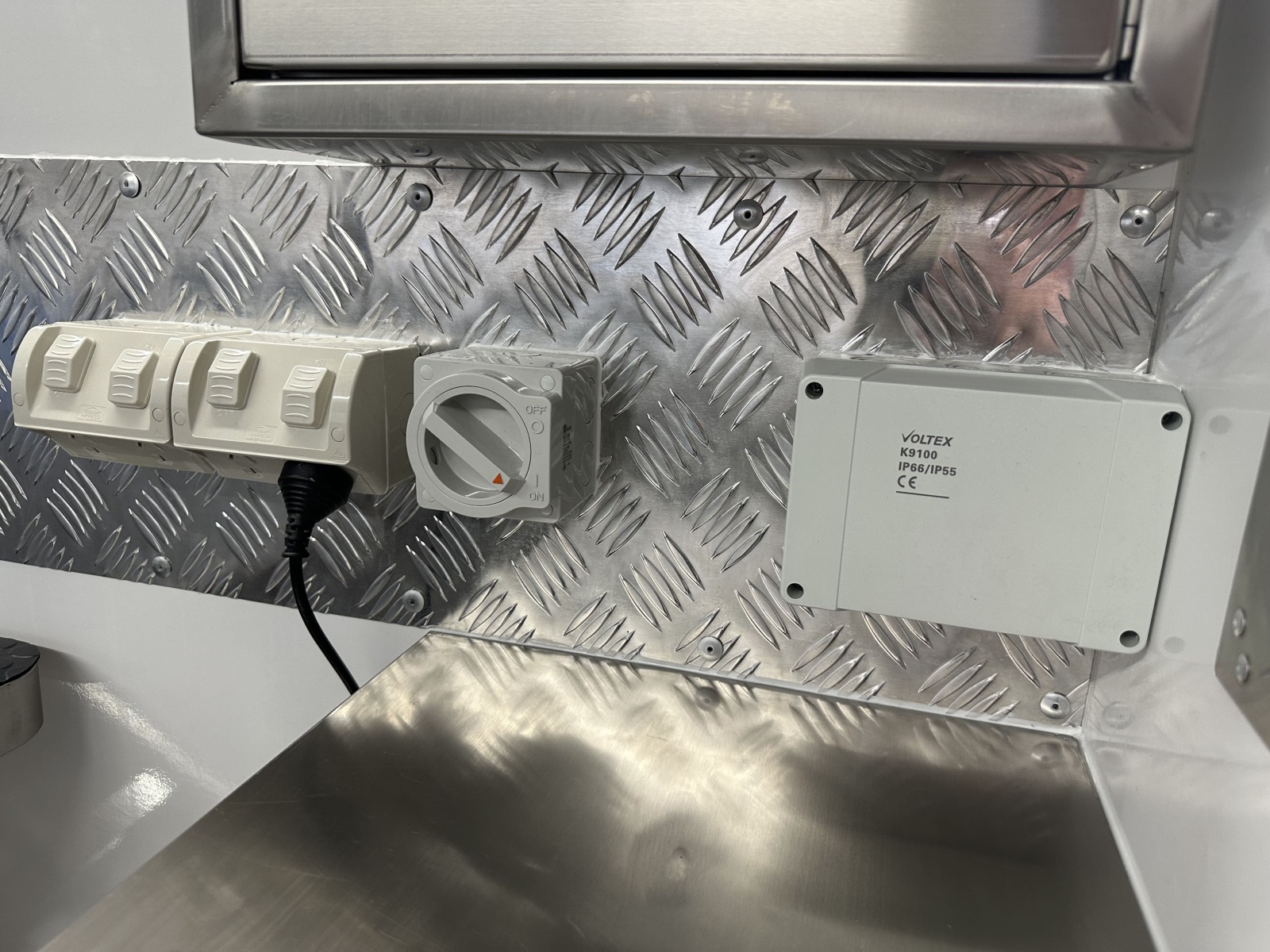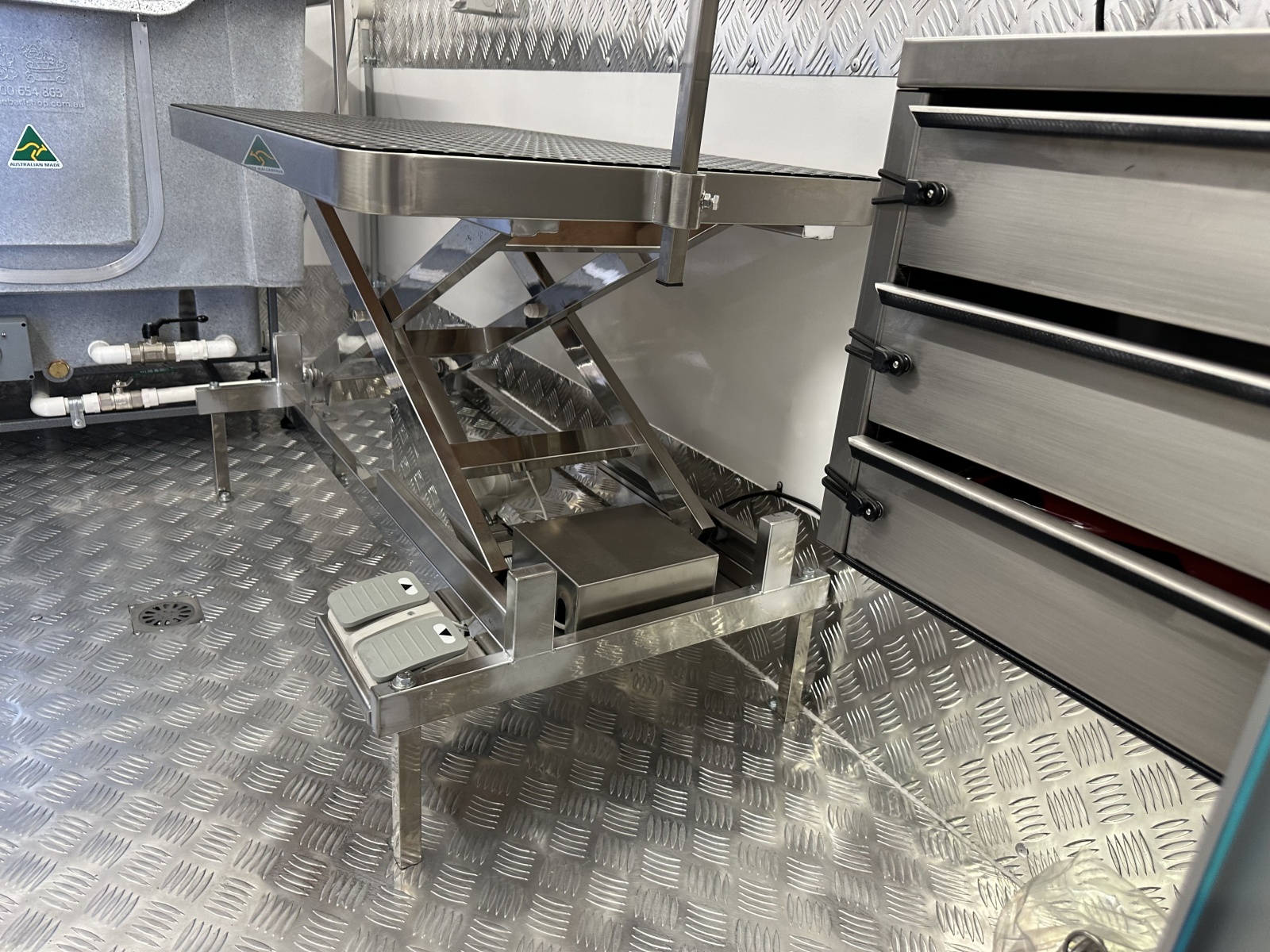 Fully enclosed stainless steel cabinet with two shelves– this means you can store items easily while driving without having to worry about them falling out