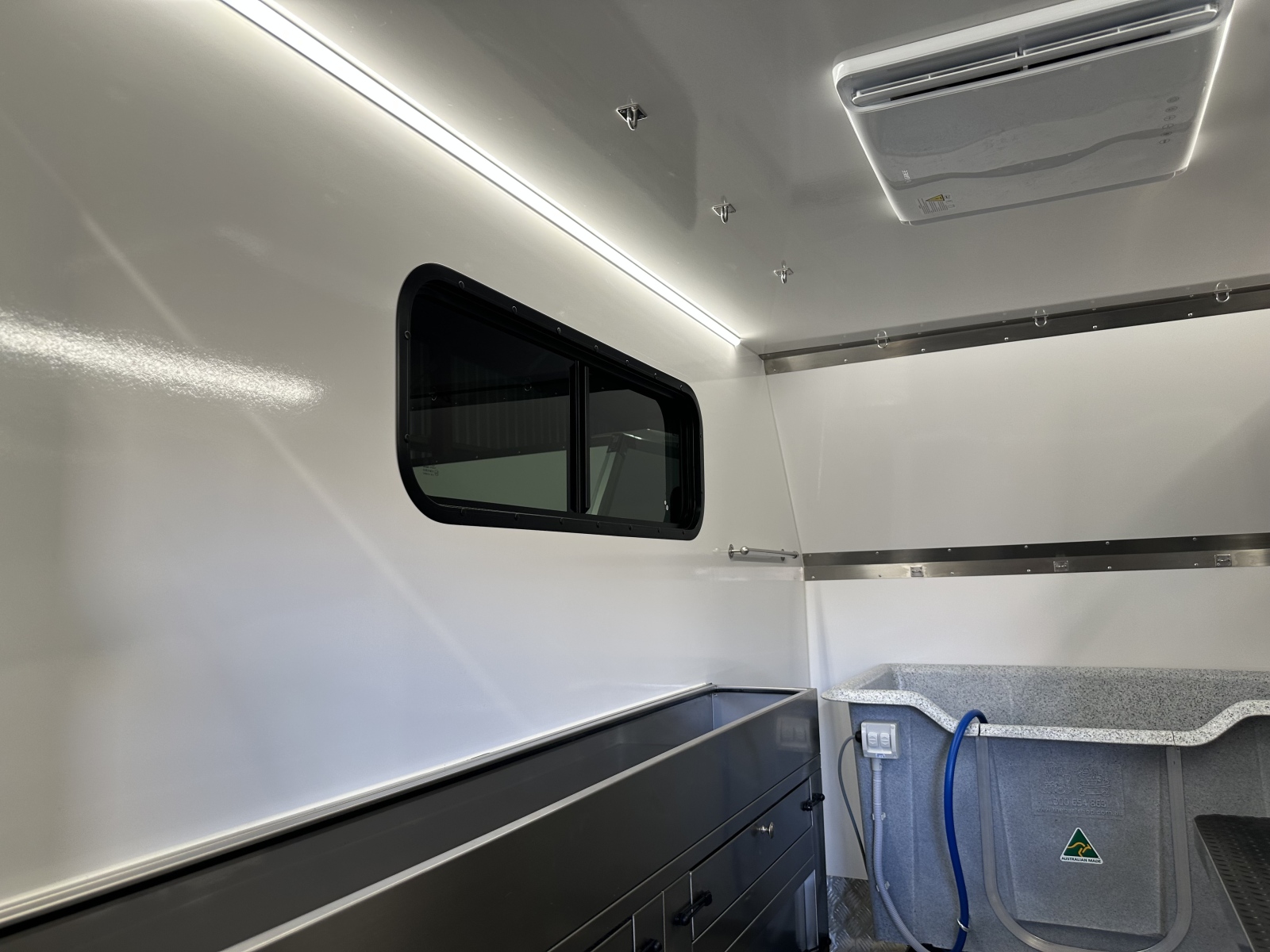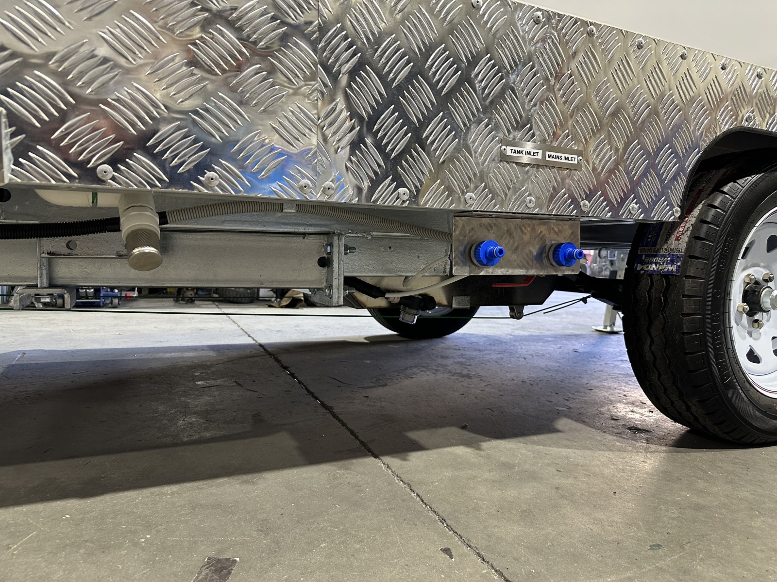 100 litre under trailer water tank– this tanks caries extra water in case you need it